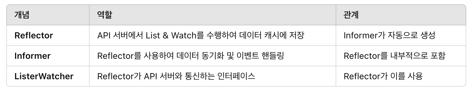 📌 즉, Informer를 생성하면 Reflector가 내부적으로 함께 생성되어 자동으로 API 서버와 동기화됩니다.